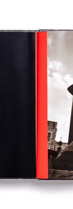 The books’ hard cover in red cloth and a vertical typographic design in a serif typeface - this design action establishes a connection between the historical and the contemporary.